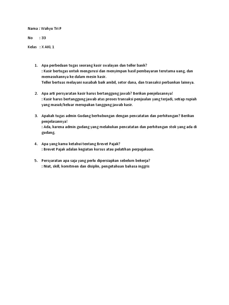Sebelum barang diserahkan kepada pelanggan tugas seorang kasir adalah mengejek dengan teliti jumlah barang dan harga barang yang dibeli. Posted on 06022015. Tanggung jawab seorang kasir yang lain adalah menyetorkan uang hasil transaksi selama dia bertugas.